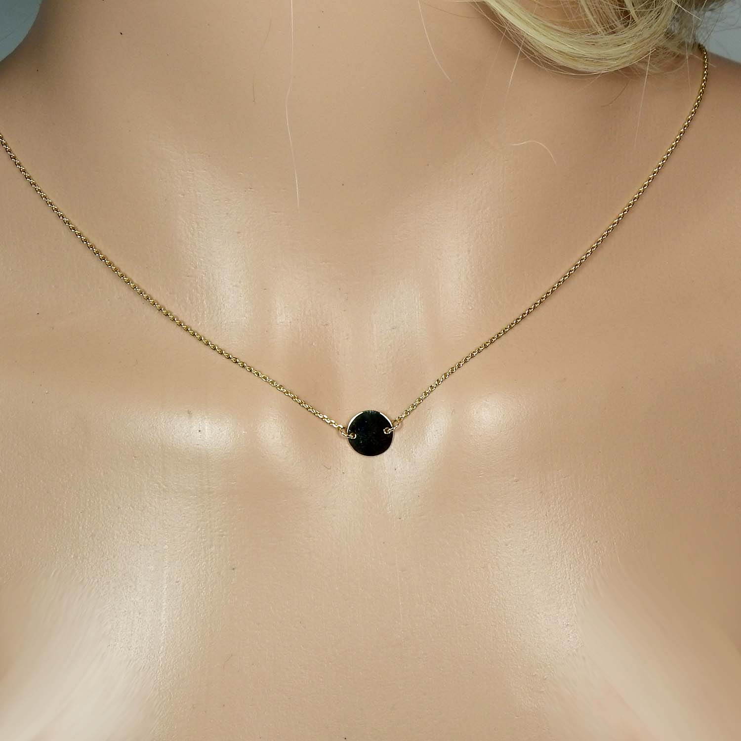 Halskette mit trendigem Mittelteil aus unserer Goldschmiede. Das runde Mittelteil hat einen... mehr