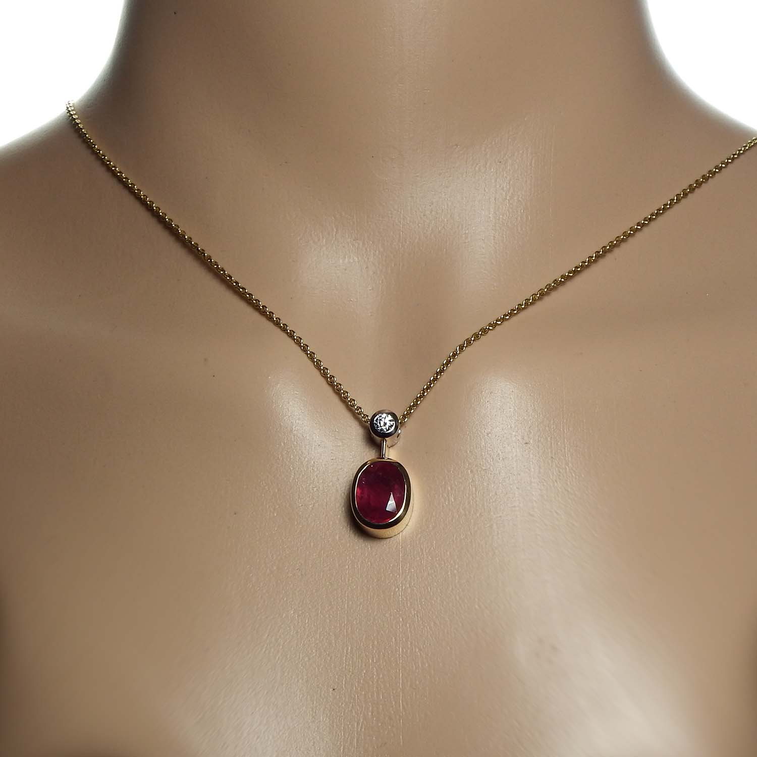 Klassisch-eleganter Rubinanhänger aus unserer Goldschmiede im Bicolorlook Gold 750/000.