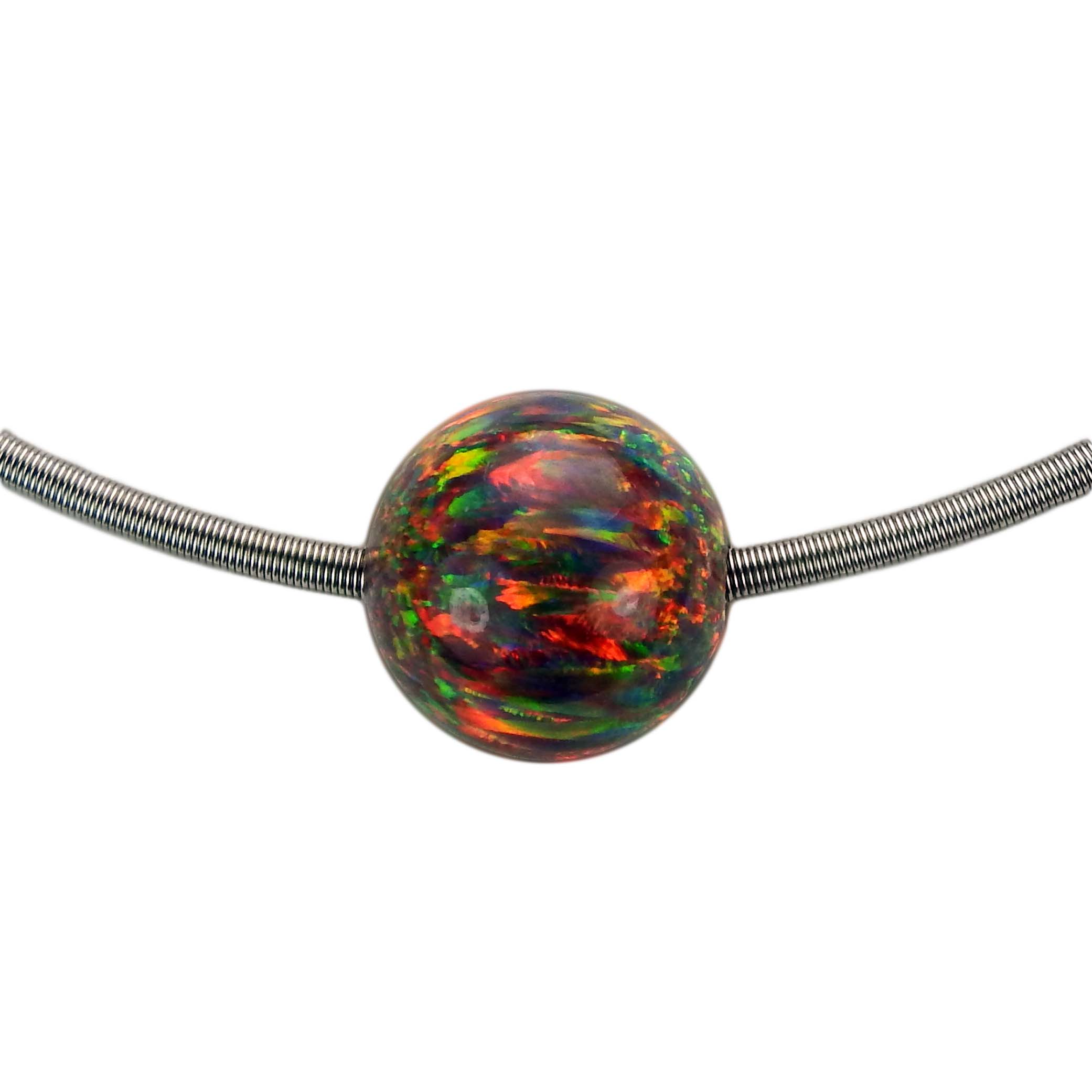 Der Opalanhänger sieht an einem Halsreifen von Bunz, wie hier abgebildet, besonders gut aus. Sehr edel in Gold oder Edelstahl oder fröhlich bunt auf Silikonschnüren - alles passt!