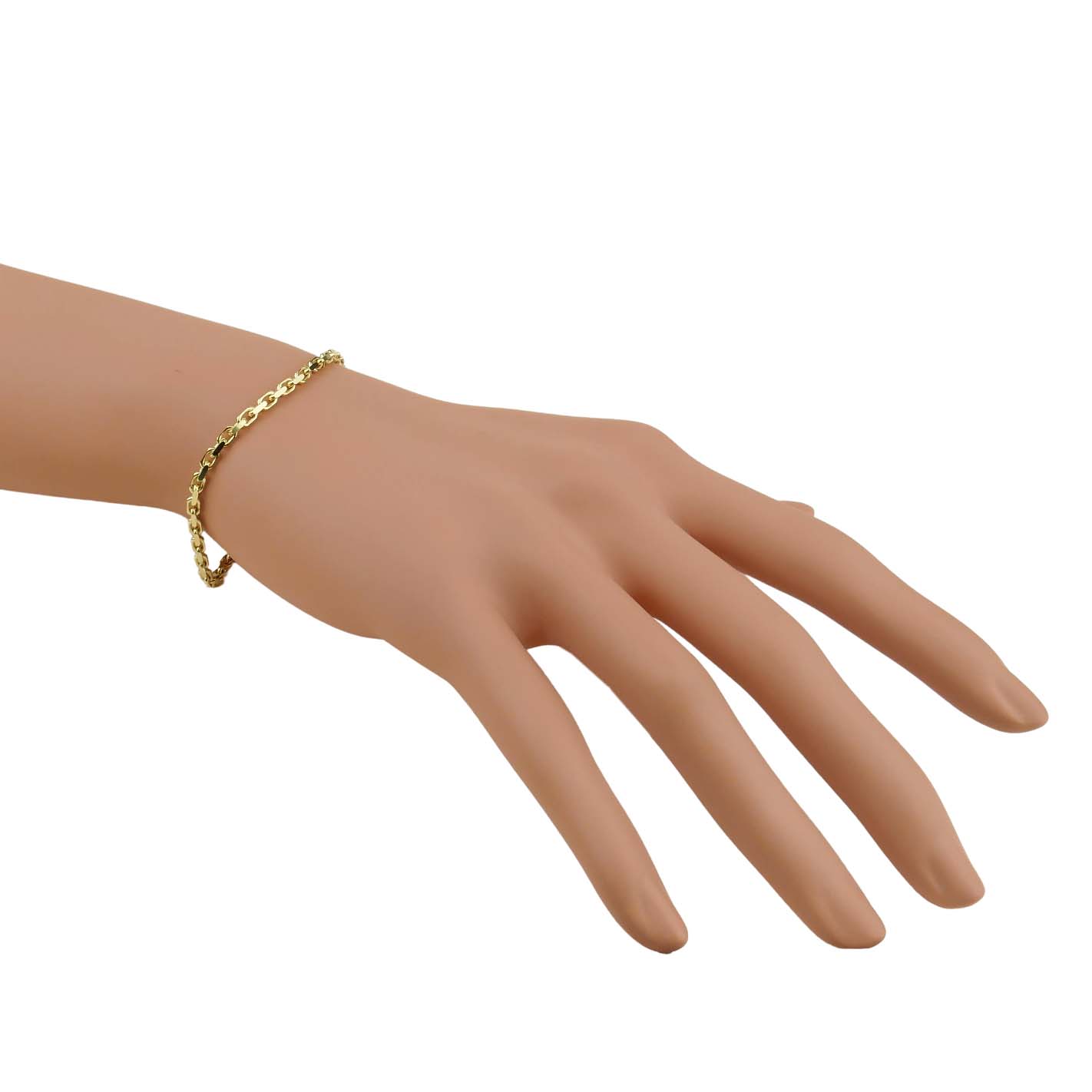 Das geschliffene Ankerarmband für Damen aus Gelbgold 333/000 eine Breite von 2,5 mm und wird mit einem Karabiner geschlossen.