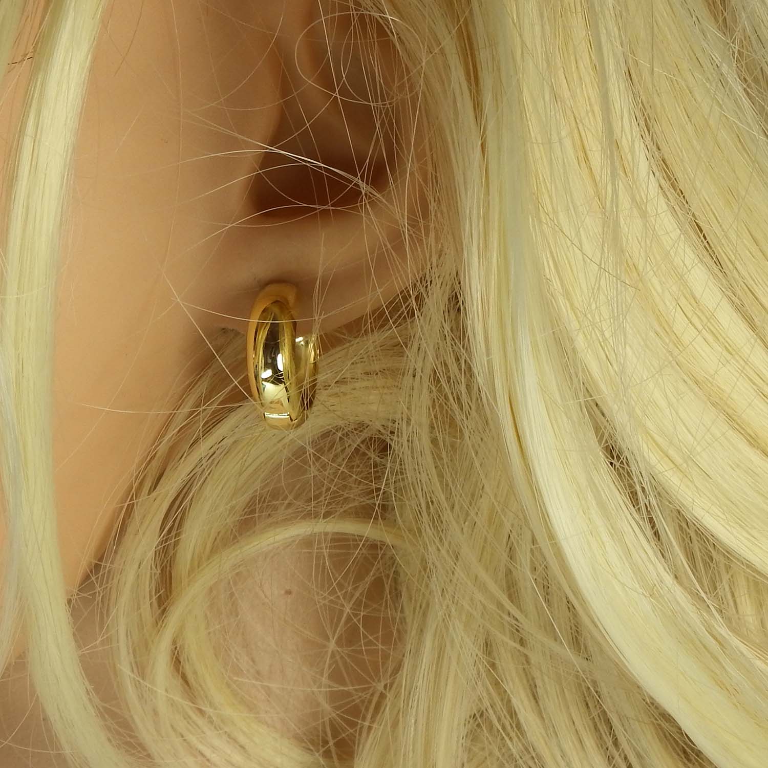 Die schlichten, hoch gewölbten Creolen aus Gelbgold 333/000 sind 5 mm breit.