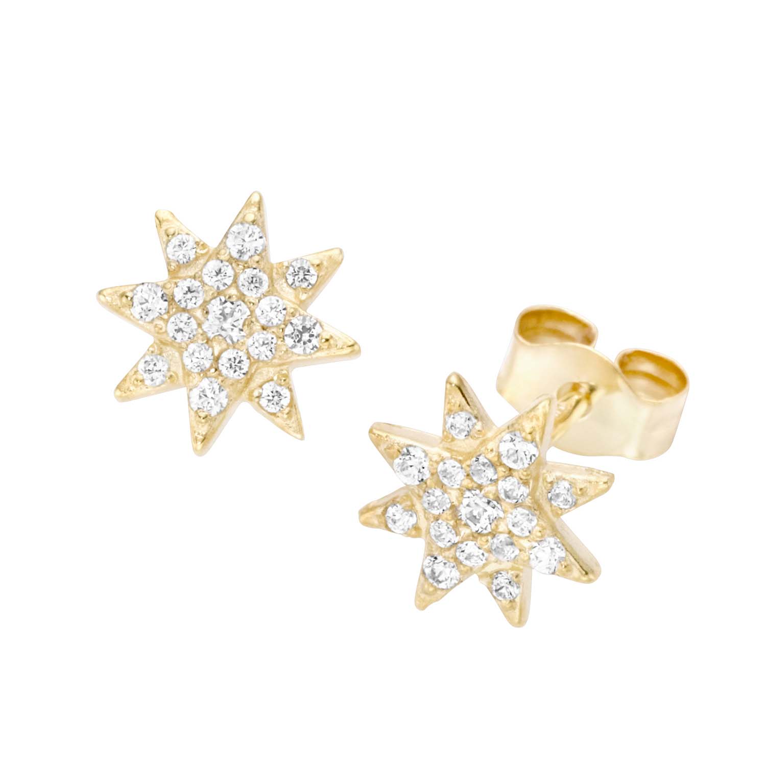Die sternförmigen Ohrstecker aus Gelbgold 375/000 sind ganz mit funkelnden Zirkonia ausgefasst.
