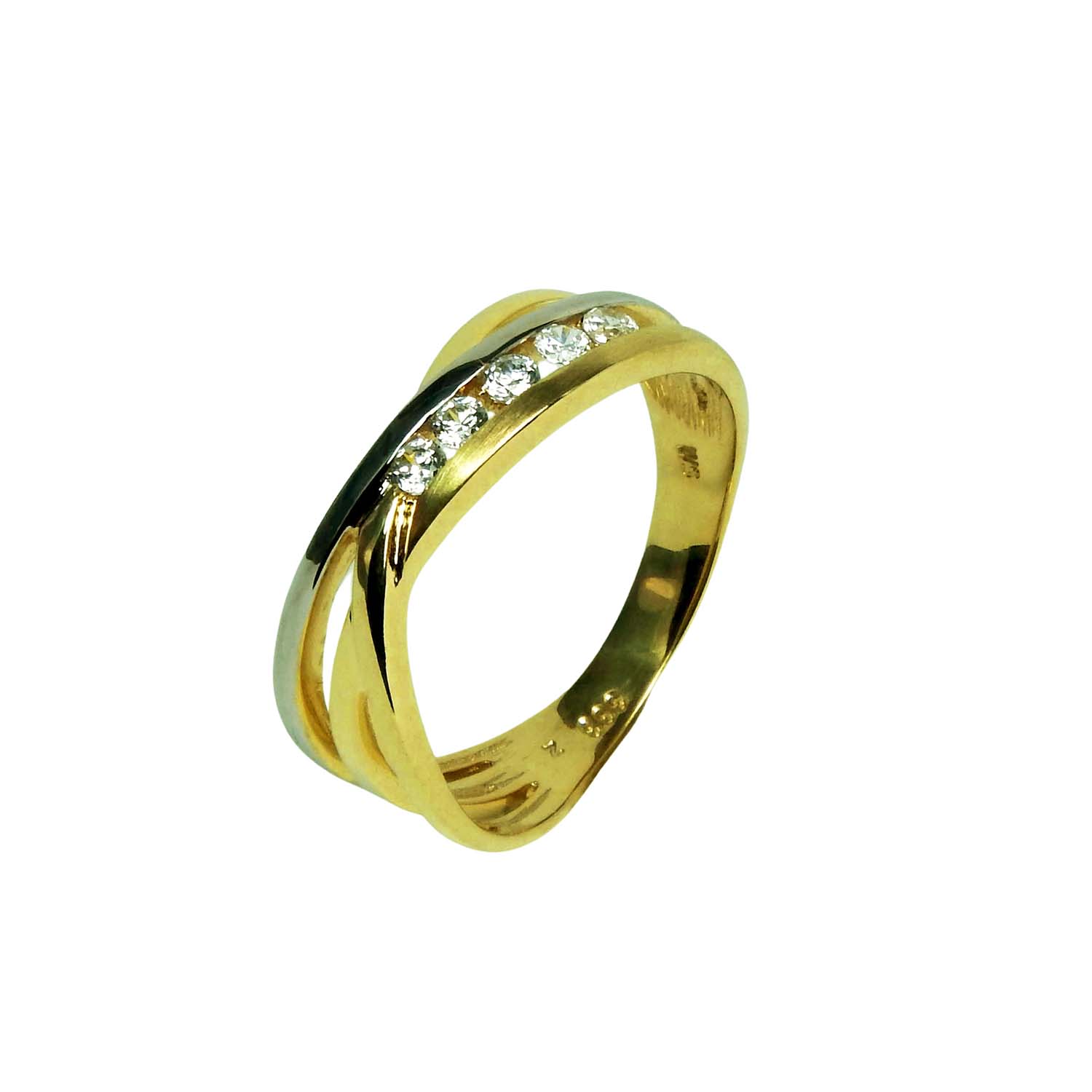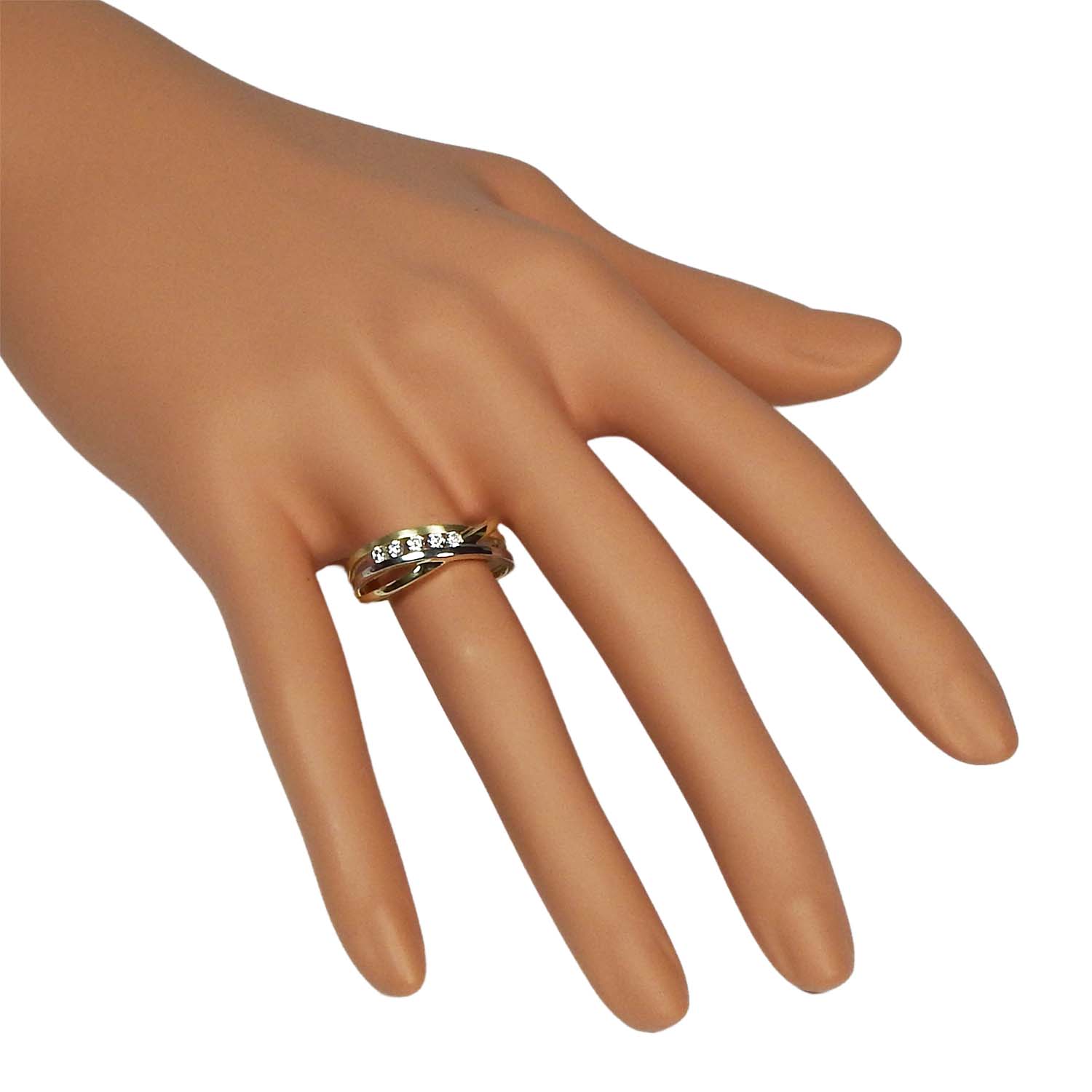Schwungvoller Damenring in Bicoloroptik aus Gelbgold 333/000 mit Zirkonia.